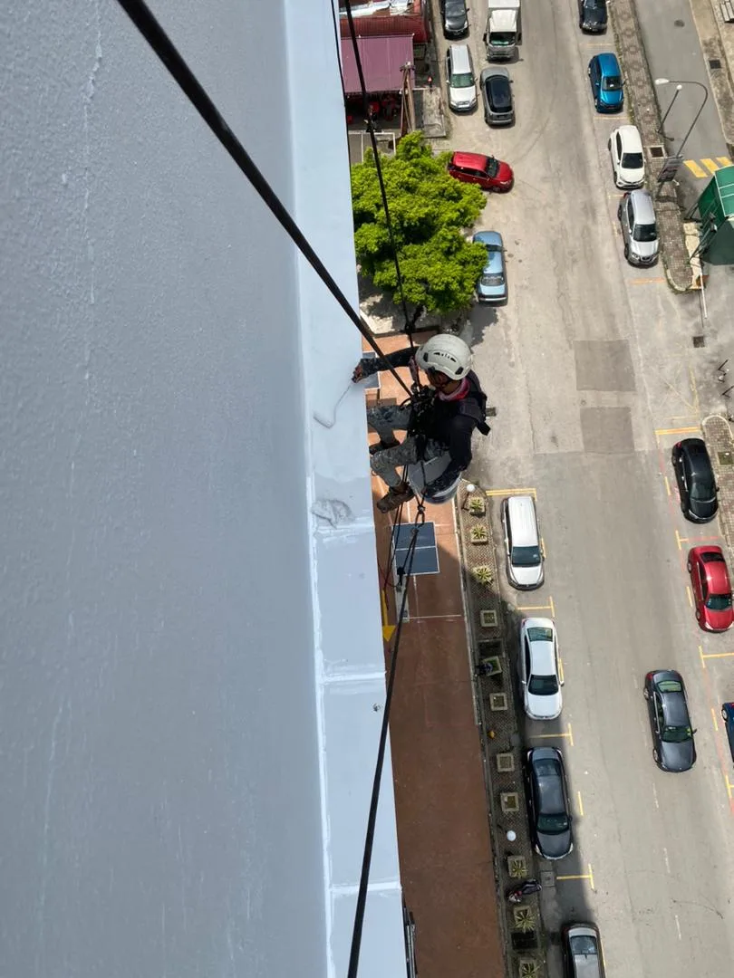 Professional rope access services for high-rise buildings, including façade repair, exterior painting, window sealing, and maintenance work, ensuring safety and efficiency without the need for scaffolding.