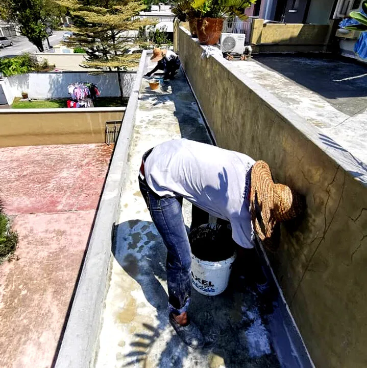 Application of high-performance cementitious waterproofing coating to rooftops, basements, and wet areas, providing strong protection against water infiltration, cracks, and structural damage.